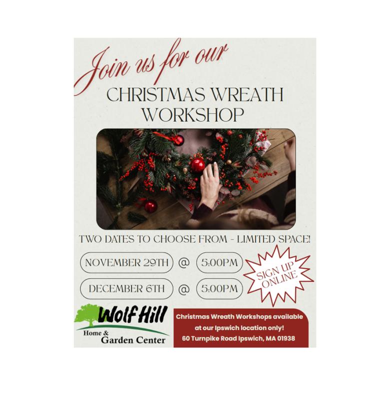 🎄 Holiday Wreath Decorating Class at Wolf Hill – Ipswich 🎄